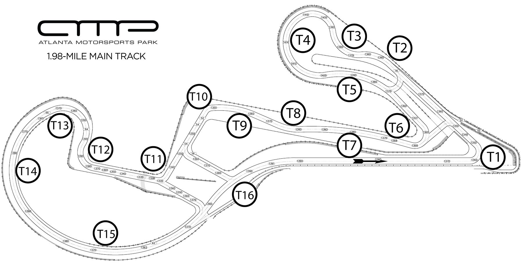 Designed by Hermann Tilke and opened in 2012, Atlanta Motorsports Park is a private motorsports country club in the mountains north of Atlanta, Georgia. Our Two mile road circuit and world famous karting track are highly technical and both feature significant elevation change. The road course suits high horsepower and momentum cars, but high grip cars will make the most of the sweeping turns and cresting entry to the sloped front straightaway. Road course driving, club racing, real estate opportunities, storage, and driving instruction are available year-round.